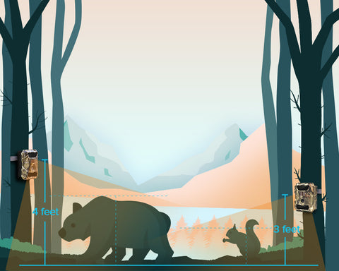 The trail camera angle is one of the most critical point to keep in mind, since it will affect how your pictures look and determine whether you can get any good pictures at all. If you have chosen the wrong angle without confirming anything, maybe you will get bunches of below – the – knee shots. Don’t mount your camera too high or too low. The sweet spot of positioning the trail camera is about 3~4 feet off the ground. You may want to keep the height higher if you are interested in large animal or lower if you want turkeys and squirrels.