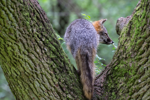 Because of their smaller size and strong, hooked claws, gray foxes are the only species of fox able to climb trees. So, try hooking up your trail camera so that it’s pointing up a tree and you may get to glimpse this remarkable sight.