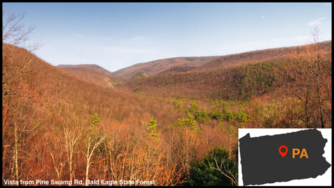 Bordering Rothrock State Forest to the west and Tiadaghton State Forest to the north, Bald Eagle State Forest is located in Laurelton, Union County. There are five State Parks contained within the forest: Poe Valley, Poe Paddy, R. B. Winter, Reeds Gap, and Sand Bridge. Note though, that despite its large area, only 4,910 acres are open to hunting.